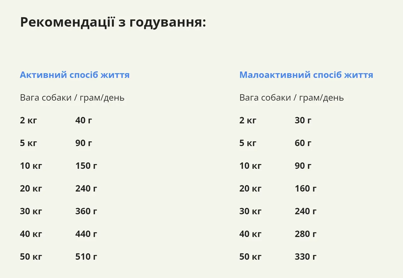 Так як кожна собака унікальна, норми годування можуть змінюватися в залежності віку, темпераменту, рівня активності і навколишнього середовища. Годуйте вашого вихованця два-три рази на день і забезпечте йому постійний доступ до чистої, свіжої води.