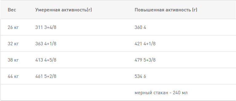 | Вага/24 год* | Неактивний/старий | Нормальної активності | Активний |